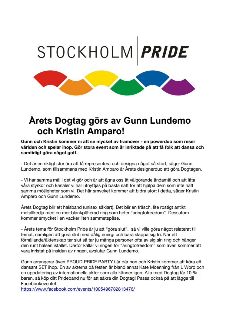 Årets Dogtag för Stockholm Pride Festival görs av Gunn Lundemo och Kristin Amparo! De gör stora event som är inriktade på att få folk att dansa och samtidigt göra något gott.