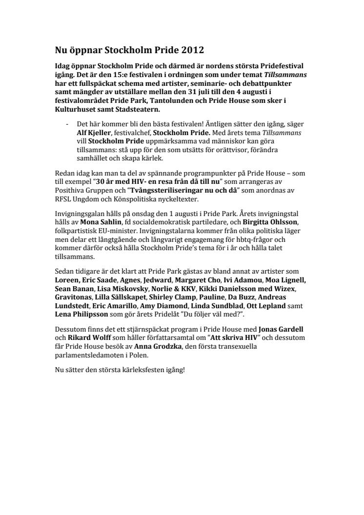Nu öppnar Stockholm Pride 2012
