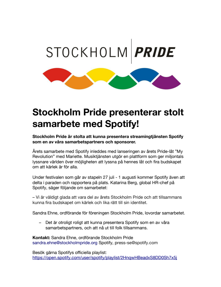 Stockholm Pride presenterar stolt samarbete med Spotify!