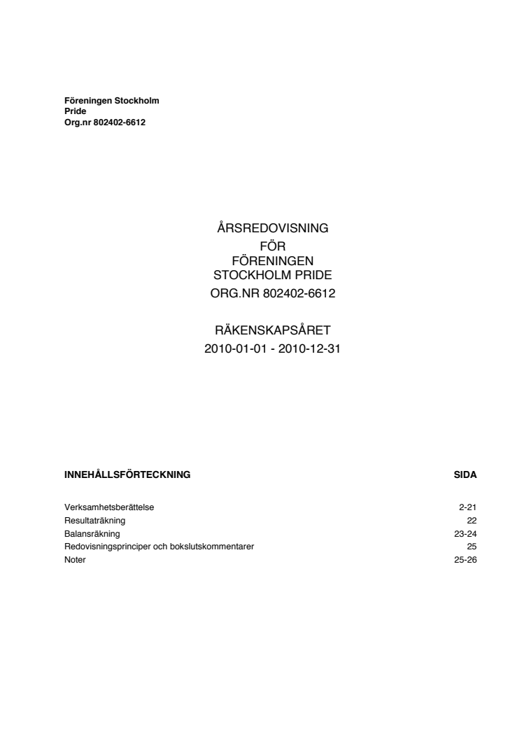 Föreningen Stockholm Pride gör ett resultat på 1,3 miljoner kronor för festivalen 2010. Det framgår av årsredovisningen som lämnas till föreningens medlemmar idag.
