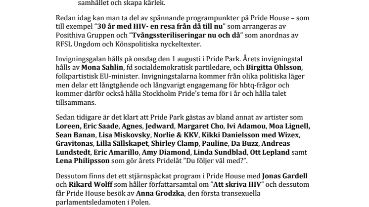 Därmed är Stockholm Pride officiellt invigt och alla utställare, volontärer, artister och besökare samlas i Pride Park och Pride House för att enas tillsammans.